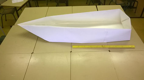 Nous observons que la forme banale d'un bateau en papier n'est pas adéquat pour flotter. Il est vrai que la charge ne pourrait être répartie sur toute la surface de la coque. Ainsi une étude doit être faite. Nous retenons alors que notre navire devra être une barque car la forme de la coque permet de mieux répartir la charge sur le navire, ce qui fait de lui un bateau stable.