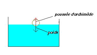 Remarques: Si le corps est totalement immergé et que sa densité est égale à la densité du fluide, alors ce corps est en parfait équilibre. Si le corps est totalement immergé et que sa densité est inférieure à la densité du fluide, alors il remonte à la surface, au contraire, si sa densité est supérieure à la densité du fluide, le corps coule.